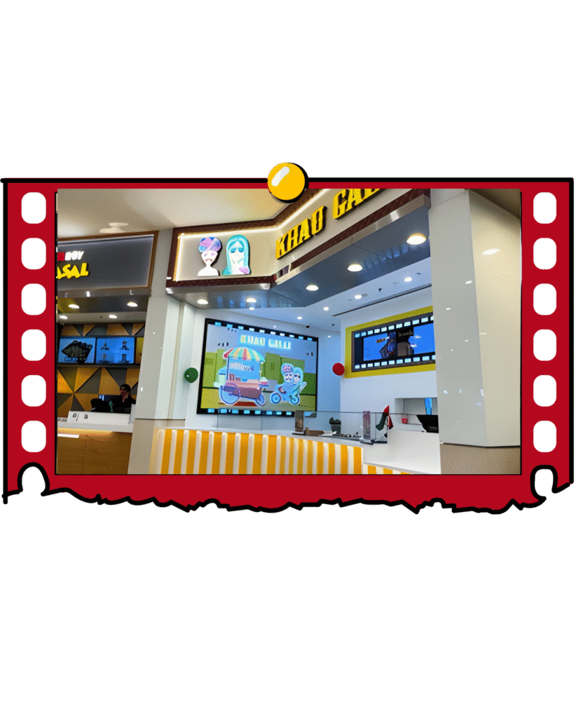 Our flagship outlet, where the Khau Galli dream first took shape. Nestled in the heart of JLT, this is where the magic began – a place that combines the hustle of Mumbai’s streets with the charm of Bollywood nostalgia.